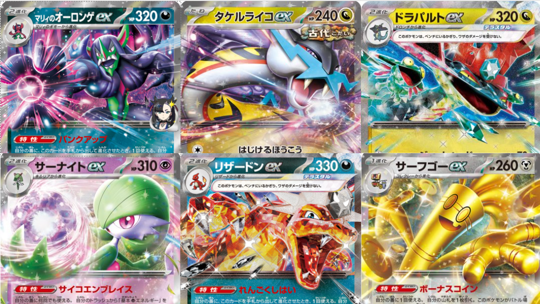 サーナイトex、サーフゴーex、タケルライコex、ドラパルトex、マリィのオーロンゲex、リザードンex